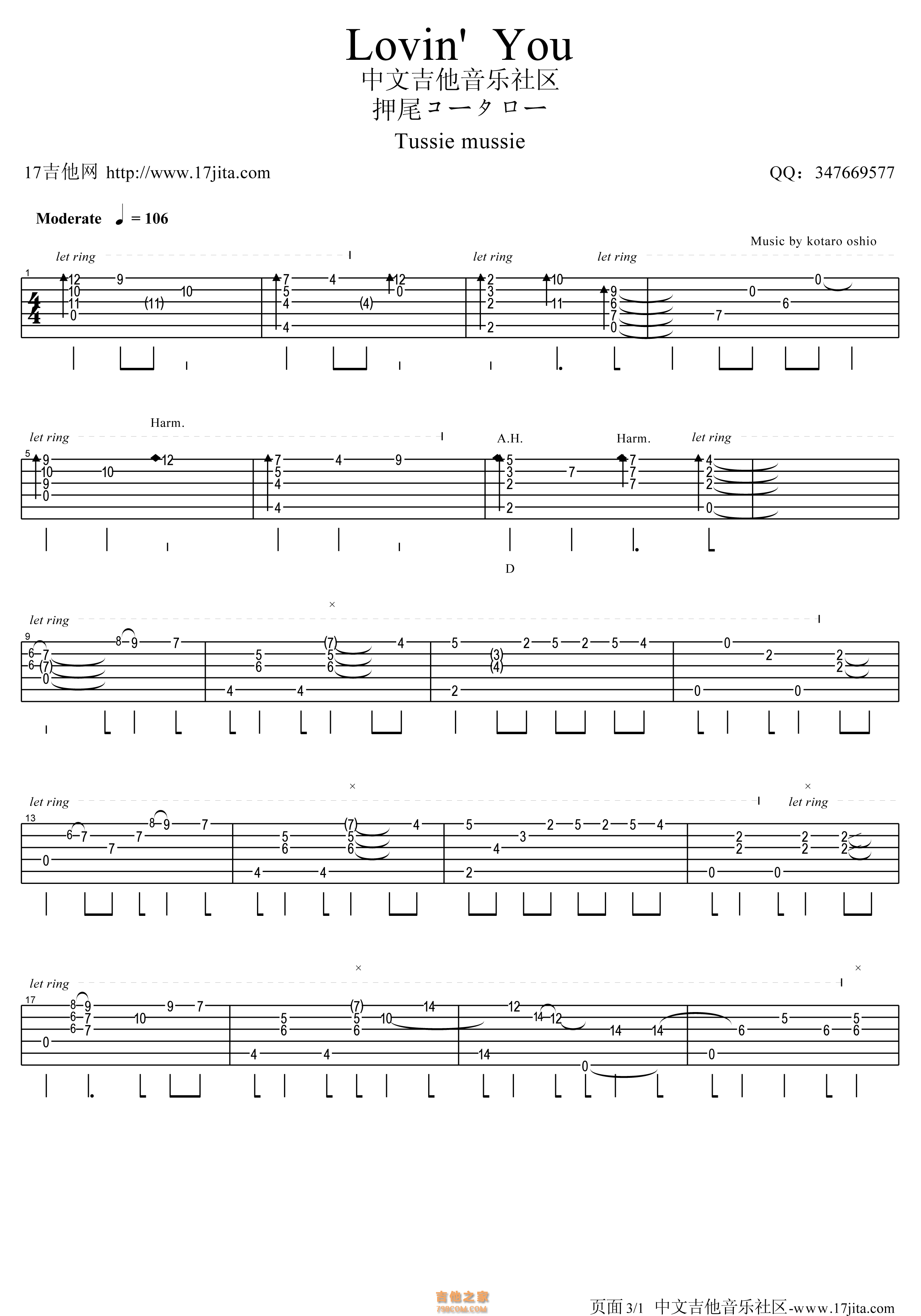 吉他之家为您提供:押尾桑 《loving you吉他谱》【高清版】 ,查看更多押尾桑 《loving you吉他谱》【高清版】 图片谱、C调吉他谱、D调吉他谱、E调吉他谱、F调吉他谱、G调吉他谱、A调吉他谱、B调吉他谱、TXT吉他谱版、GTP吉他谱版、押尾桑 《loving you吉他谱》【高清版】 简谱、押尾桑 《loving you吉他谱》【高清版】 尤克里里谱、六线谱、五线谱、吉他和弦谱及押尾桑 《loving you吉他谱》【高清版】 吉他教学视频,请查看下方"相关阅读"。