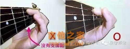Chord)的时候,「左手食指根部」可以轻靠琴颈下缘,作为整个手掌的支撑点,稳定压弦的手指。虽然手掌容易碰到第一弦,但只要调整一下角度就好了。若左手没有支撑点,在转换和弦时很容易发生失误。下面四张图,可以看出手指压和弦的差异性,多比较看看差在哪里~
