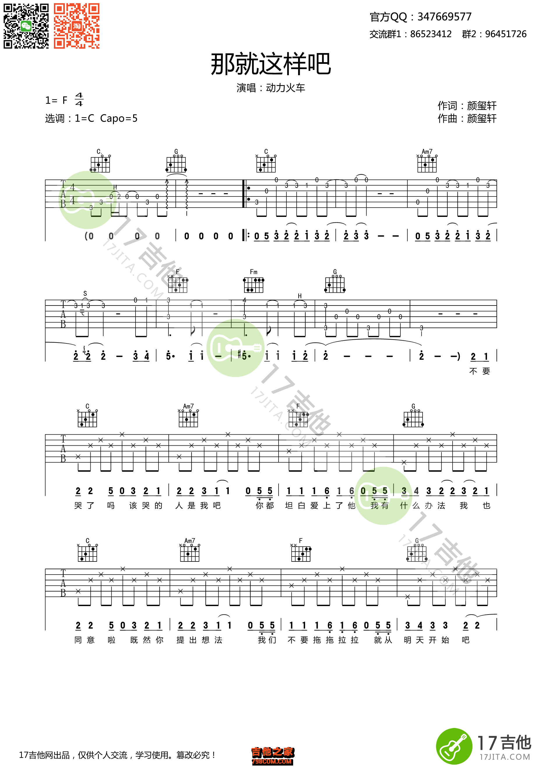 本章为“那就这样吧吉他谱 动力火车 C调高清弹唱谱 ”信息,了解更多高清无码版本吉他谱、尤克里里、教学视频等信息,请关注吉他之家,我们会持续更新。