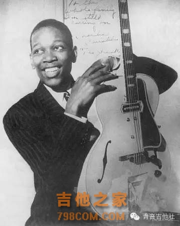 摇摆的年代 故事就从名叫Charlie Christian的年轻人,將他的Gibson ES-150插上音箱开始…. 与萨克斯风、小号、钢琴等乐器相较之下,吉他在早期爵士乐当中是比较沒有地位的,主要的原因便在于音量的大小。在1940年代以前流行的摇摆(Swing)爵士乐,由于多半是以乐团的形式演出,故此一时期又被称为大乐团(Big Band)时期。在其他乐器的包围之下,当时尚无成熟的技术將声音放大的吉他,其原本的音量无法与其他乐器匹敌,也就无法担任重要的角色。一直到了1936年,吉他名牌Gibson推出了第一把裝有实用化的拾音器(pick-up)的吉他ES-150,吉他手們才拥有了能与萨克斯风手們抗衡的兵器。而將這项新科技发扬光大的第一人,则非Charlie Christian莫属。 爵士吉他第一人- Charlie Christian(1916~1942)