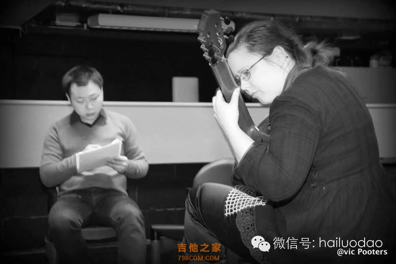 还可以教国外美女呢!嘻嘻~ 可可 我感觉这样对老师的要求好高啊!要对每个学生都有不同的要求。 管沧 对的,我觉得有个矛盾的地方是对社会上的老师其实比对音乐学院的老师要求更高。像在音乐学院,每个老师会解决不同的问题,有教视唱练耳的,有教器乐的,当然现在音乐学院也有一个问题,就是学的捏不在一起。但是在社会上,一个老师要解决这么多方面。 可可 恩~确实是,这也就是社会老师参差不齐的一个重要原因吧! 管沧 恩,不过职业也不代表专业,只代表是否以此业。所以有些音乐爱好者,你能感觉出他们对音乐的爱是纯粹的。 可可 那我还有一个问题,古典吉他是你的兴趣,但是其实拿兴趣来做职业也是一个很“危险”的事情。像普通的爱好者,他可以想弹就弹,不想弹就不弹。遇到难的曲目,可以选择放弃,但是作为职业的演奏家就不能这样“任性”啊! 管沧 对的。这个时候你更看重的是练琴的效率。你要针对不同的曲目,合理安排时间。你在乎可能是整体曲子的完成质量。你要设定好这首曲子练多久,那首练多久,需要合理的切换。这个时候真的是非愉悦的。