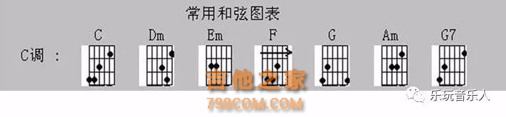 3型指型音阶对应的C调常用和弦如下(可点击图片放大查看):