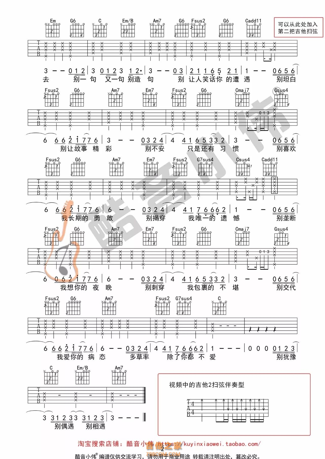 | 《别》薛之谦吉他谱及教学视频发布 2017-11-17 《别》演示及教学视频 在优酷搜索“酷音小伟吉他教学”可观看/下载视频 (戴耳机视听效果更佳)
