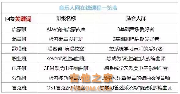 关注后,回复“chm”即可获得“音乐人网11个班级内测精选教程一份”