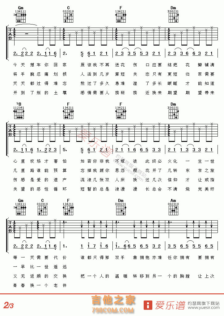 本章为“陈奕迅《爱情转移》爱情转移吉他谱 ”信息,了解更多高清无码版本吉他谱、尤克里里、教学视频等信息,请关注吉他之家,我们会持续更新。