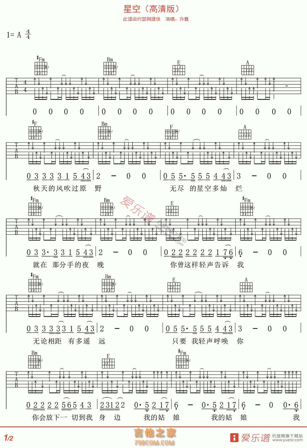 本章为“许巍《星空》星空(高清版)吉他谱 ”信息,了解更多高清无码版本吉他谱、尤克里里、教学视频等信息,请关注吉他之家,我们会持续更新。