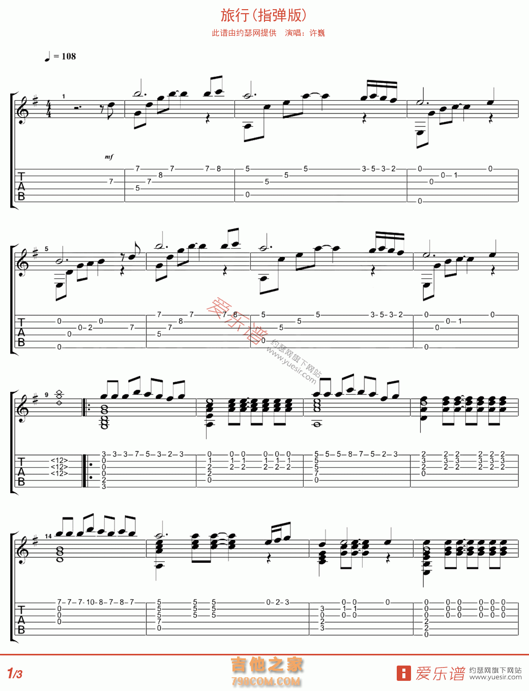 本章为“许巍《旅行》旅行(指弹版)吉他谱 ”信息,了解更多高清无码版本吉他谱、尤克里里、教学视频等信息,请关注吉他之家,我们会持续更新。