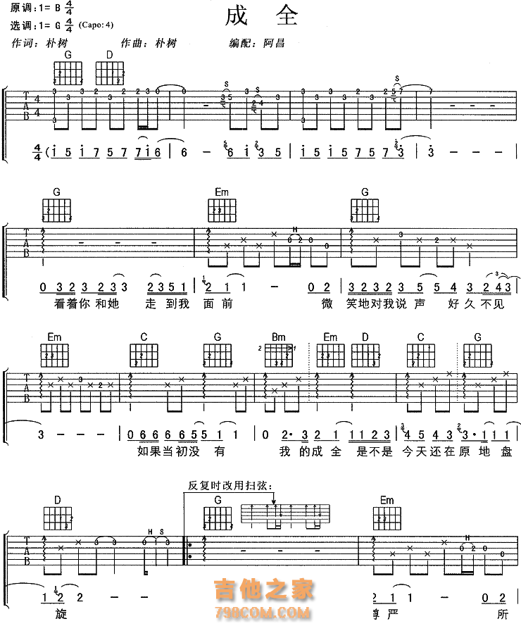 本章为“刘若英《成全》成全吉他谱六线谱 ”信息,了解更多高清无码版本吉他谱、尤克里里、教学视频等信息,请关注吉他之家,我们会持续更新。