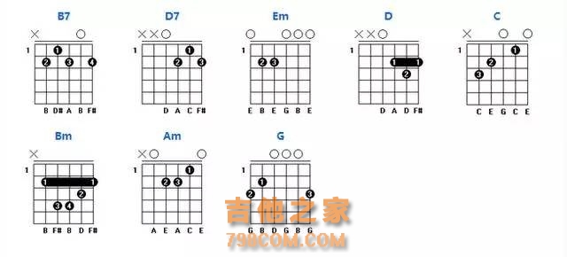 G调常用和弦图: