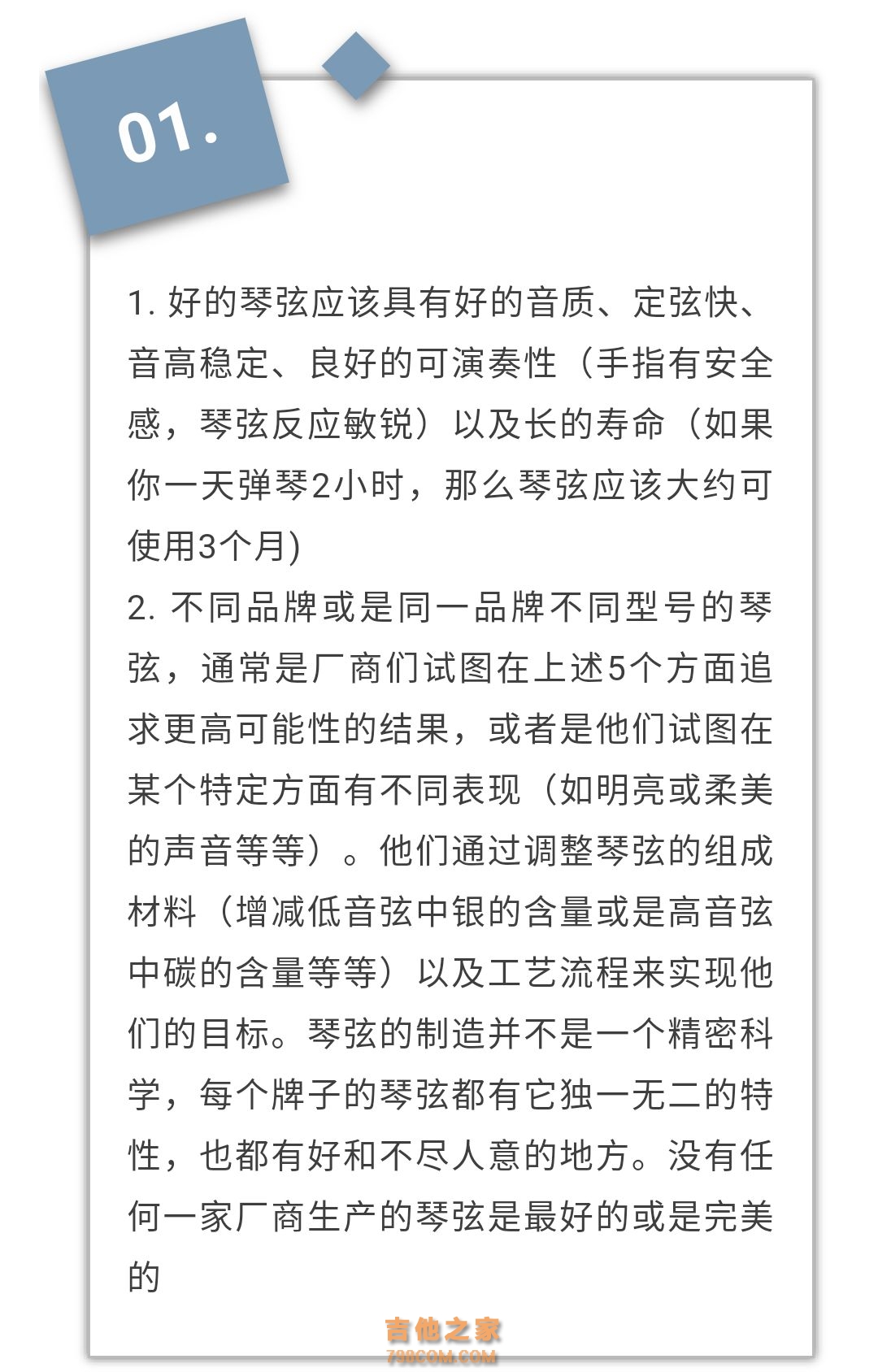 02. 3. 听取别人的意见是个很好的主意,但是要注意,不同的人在评价琴弦时会有不同的标准。比如说,一个乐器制作家一般会比较偏爱没有太多特色的琴弦(既不要太