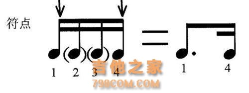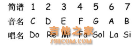 ![]() ②五种“变音记号” 1、升记号(#),意思是将基本音级“升高半音”。 2、降记号(b),意思是将基本音级“降低半音”。 ![]() 3、重升记号(×),意思是将基本音级“升高俩个半音”(一个全音)。 4、重降记号(bb),意思是基本音级“降低俩个半音”(一个全音)。 5、还原记号(ヰ),意思是已经升高或降低的音“还原”。 值得提醒的是,同一小节的音,如果没有碰到还原记号的,一律是和原来的升高还是降低的音一样。 ![]() ③音的时值 音没有加短横线的为“1/4音符”,在后加叫短横线为“增时线”,每加一条意思是“增加原时值的2倍”,加一条为1/2音符,加俩条为全音符。 在下面加横短线为减时线。每加一条缩短原时值的1/2,加一条为1/8音符,加俩条为1/16音符。 ![]() ④附点 在音的后面加一圆点,意思是此音符一半的时值。 ![]() ⑤连音 连音在音的上面加连线,意思是音长为连线间所有音加起来的时值 。 ⑥休止符 休止符为停止的音,用0来标注。 如下图:选调为G调吉他六线谱: ![]() 例: 将吉他平放(琴头朝左)看到的就是这样的六根弦,最上面一根就意思是1弦(最细的那根),依次往下,最下面一根是6弦。 ![]() ⑦和弦 举一例,上面的就是一个和弦“D和弦”。 它就好比把一把吉他竖立,琴头朝上,最左边是最粗的那根弦,叫6弦,最右边就是最细的那根弦,叫1弦。 ![]() 上面的数字意思是左手按弦的手指(食指为1,中指为2,无名指为3,小指为4)。 所以,该D和弦就应该这样来按:左手食指按住第2品3弦,中指按住第2品1弦,无名指按住第3品2弦。 |