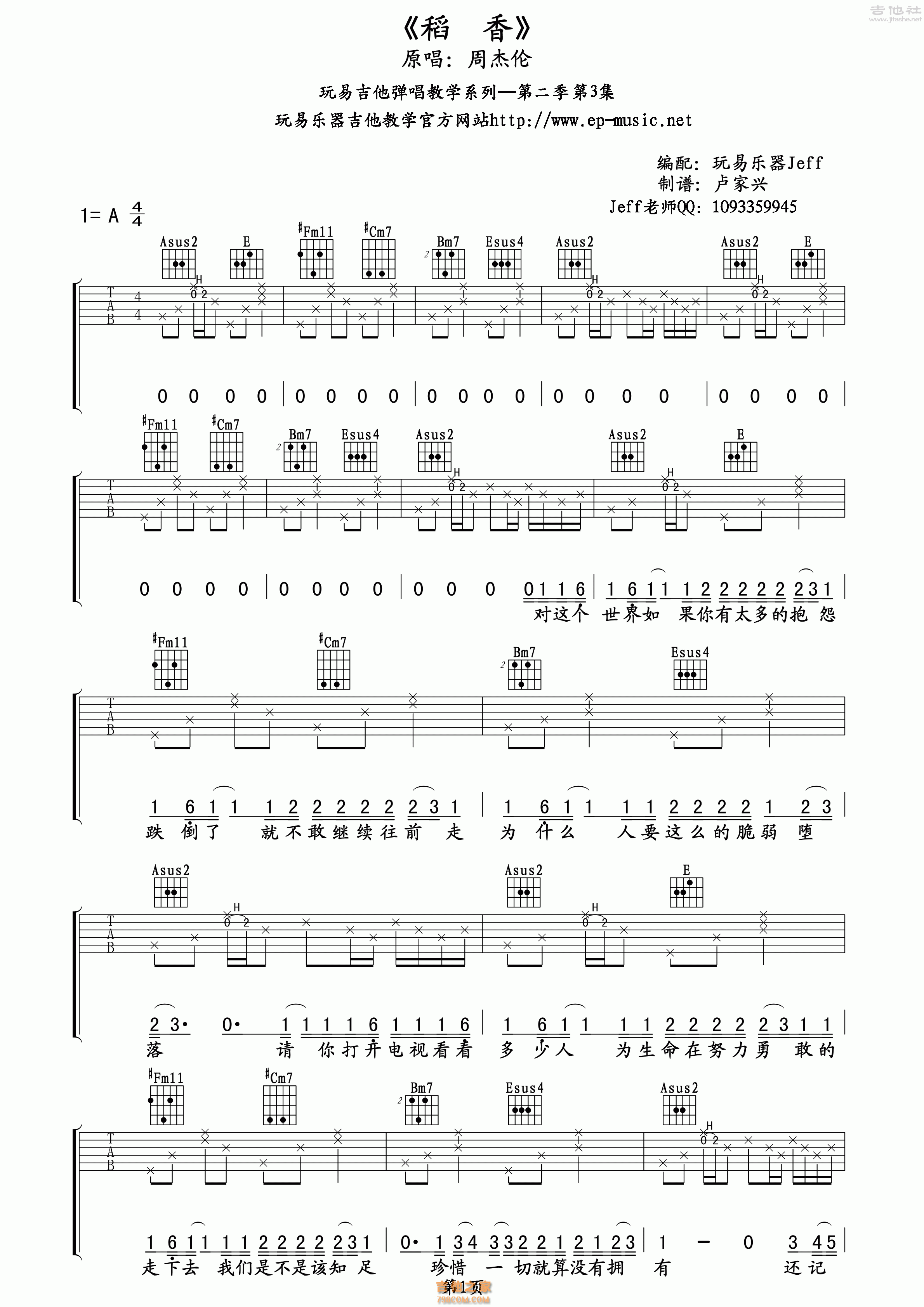本章为“玩易A调版周杰伦《稻香》吉他弹唱六线谱 ”信息,了解更多高清无码版本吉他谱、尤克里里、教学视频等信息,请关注吉他之家,我们会持续更新。