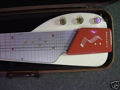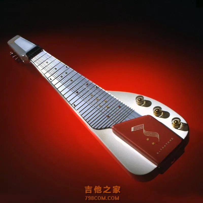 Gibson Ultratone 二战后的Gibson,仍然严重依赖战前的传统,无论是工艺还是吉他型号,这让当时的吉布森CEO有点担心。为了改变这种现状,1946年,Gibson聘用了美国著名的工业设计团队Barnes&Reinecke打造了一款全新的夏威夷吉他---Ultratone,它展现了战后美国的现代设计美学,可以说是Gibson美学的划时代产物。