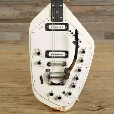 不过他们曾经也生产过吉他,尤以奇特的造型和功能而闻名。 1961年,Vox推出了Vox Phantom(幻影),它的琴身是一个五面体,没有任何传统设计的曲线。