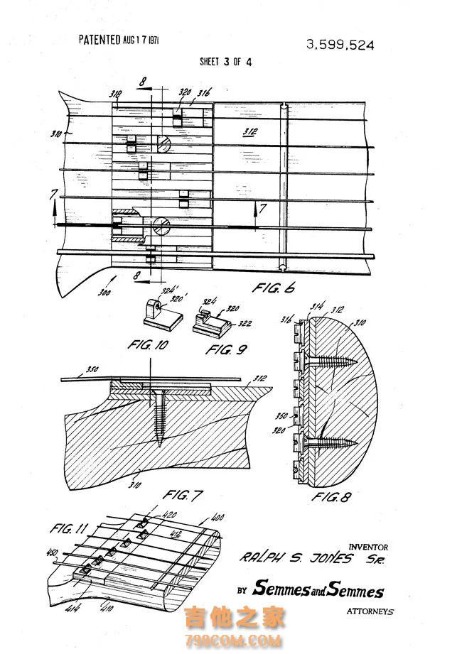 Ralph Jones的Micro-Nut专利 他还发明了辅助调音精度的Calibrato颤音系统;独创的Tonesponder琴身更是采用了一种新颖的构造方法:将琴体两半的木制部分用金属夹和一块马石接缝垫圈连接。
