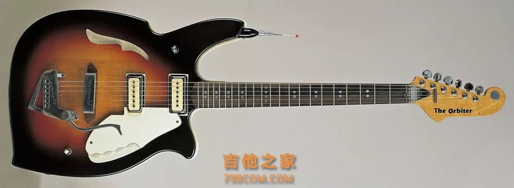 而他最重要的创举则是在1968年推出的电吉他---Orbiter,它配备内置FM发射器和外置天线。该装备带有必要的FM接收器,可以插在的放大器上链接音响。