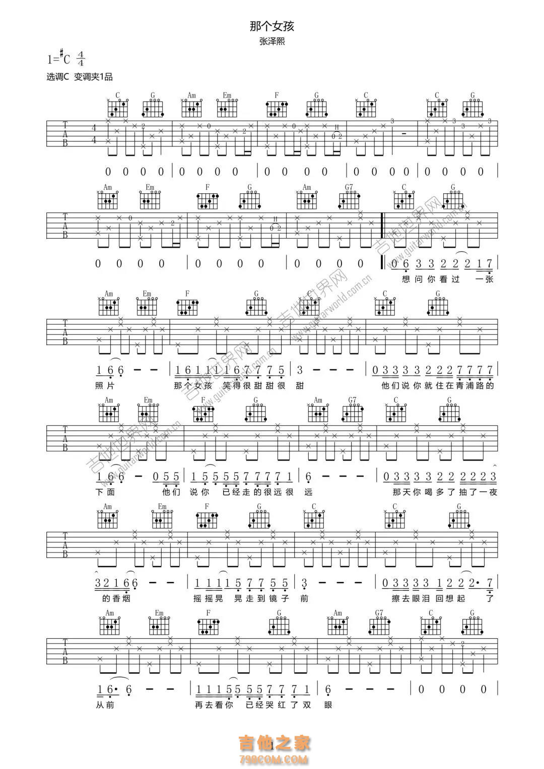 《那个姑娘》张泽熙,作词作曲,原调升C调。变调夹夹一品,C调指法编配。 副歌和弦走向:C-G-Am-Em-F-G-C(1563451) 很常用的和弦走向,前面是卡农和弦走向:1563 后面是非常常用的和弦结束走向,这叫和弦终止式:4-5-1 这次我特意在网上把弹唱谱找到供大家对照学习((往下翻) |