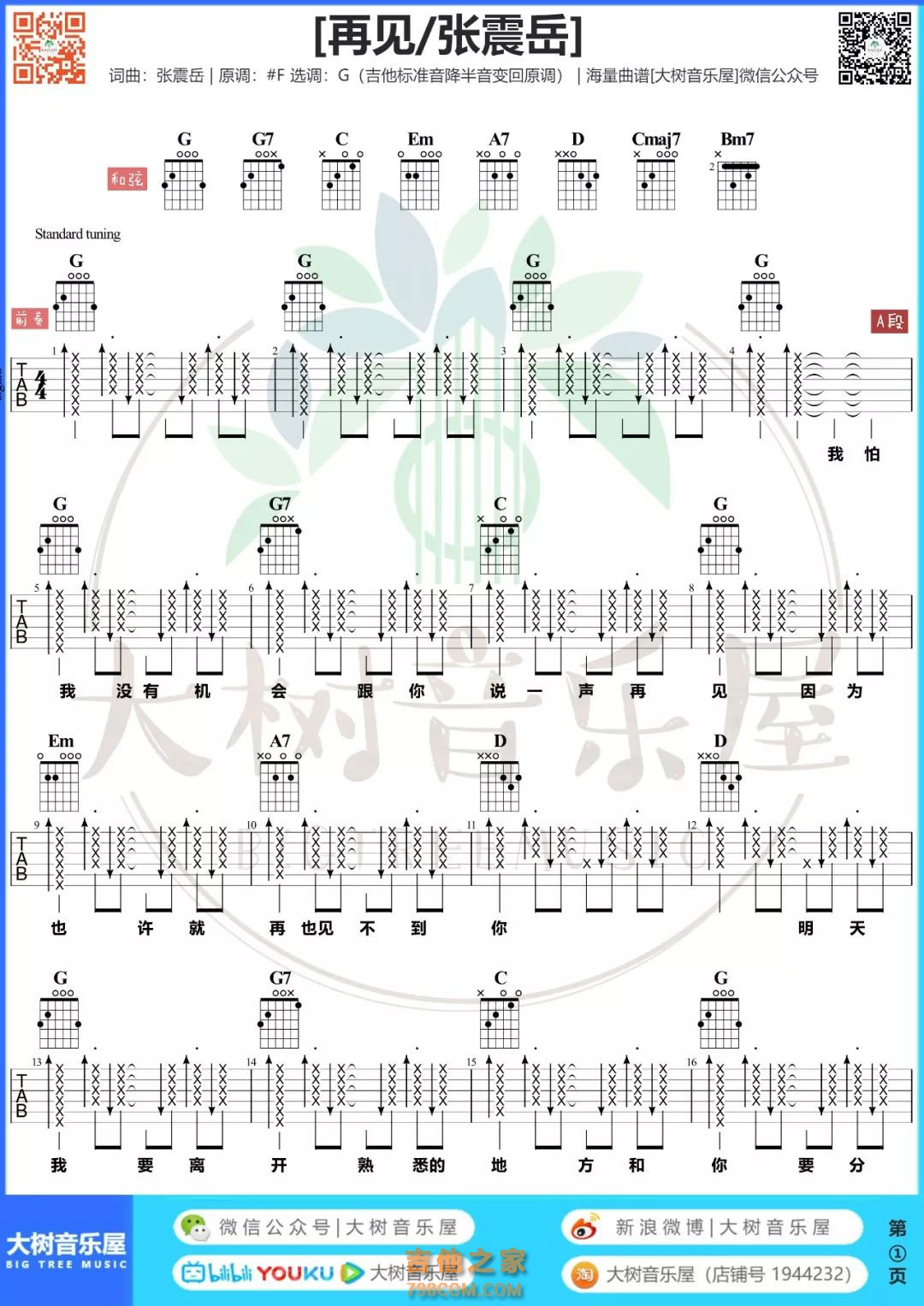 歌词/Lyric 我怕我没有机会 跟你说一声再见 因为也许就再也见不到你 明天我要离开 熟悉的地方和你 要分离 我眼泪就掉下去 我会牢牢记住你的脸 我会珍惜你给的思念 这些日子在我心中 永远都不会抹去 我不能答应你 我是否会再回来 不回头 不回头的走下去 我怕我没有机会 跟你说一声再见 因为也许就再也见不到你 明天我要离开 熟悉的地方和你 要分离 我眼泪就掉下去 我会牢牢记住你的脸 我会珍惜你给的思念 这些日子在我心中永远都不会抹去 我不能答应你 我是否会再回来 不回头 不回头的走下去 我会牢牢记住你的脸我会珍惜你给的思念 这些日子在我心中永远都不会抹去 我不能答应你 我是否会再回来 不回头 不回头的走下去 不回头 不回头的走下去 吉他弹唱曲谱 @大树音乐屋