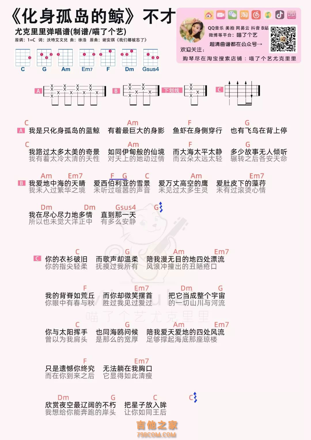 《化身孤岛的鲸》改编自香港歌手谢安琪演唱的歌曲《我们都被忘了》,由沃特艾文儿重新填词,只佛(填词原唱)、兔裹煎蛋卷、卡布(周深)、人衣大人、云の泣、不才、东篱、鲸鱼岛乐队主唱白森、司夏等演唱,这首歌在网络中红极一时,许多网友被细腻优美又充满意境的歌词打动,纷纷跟风翻唱,甚至连原唱者谢安琪都对改编后的歌词大加赞赏。 2015年初,由音乐平台“爱原创”与该歌曲原作者及版权公司金牌大风商谈后,买下了改编版权,《化身孤岛的鲸》不再是一首单纯的网友翻唱歌曲,而会推出正式版本。 不才《化身孤岛的鲸》现场版 不才《化身孤岛的鲸》弹唱谱 |