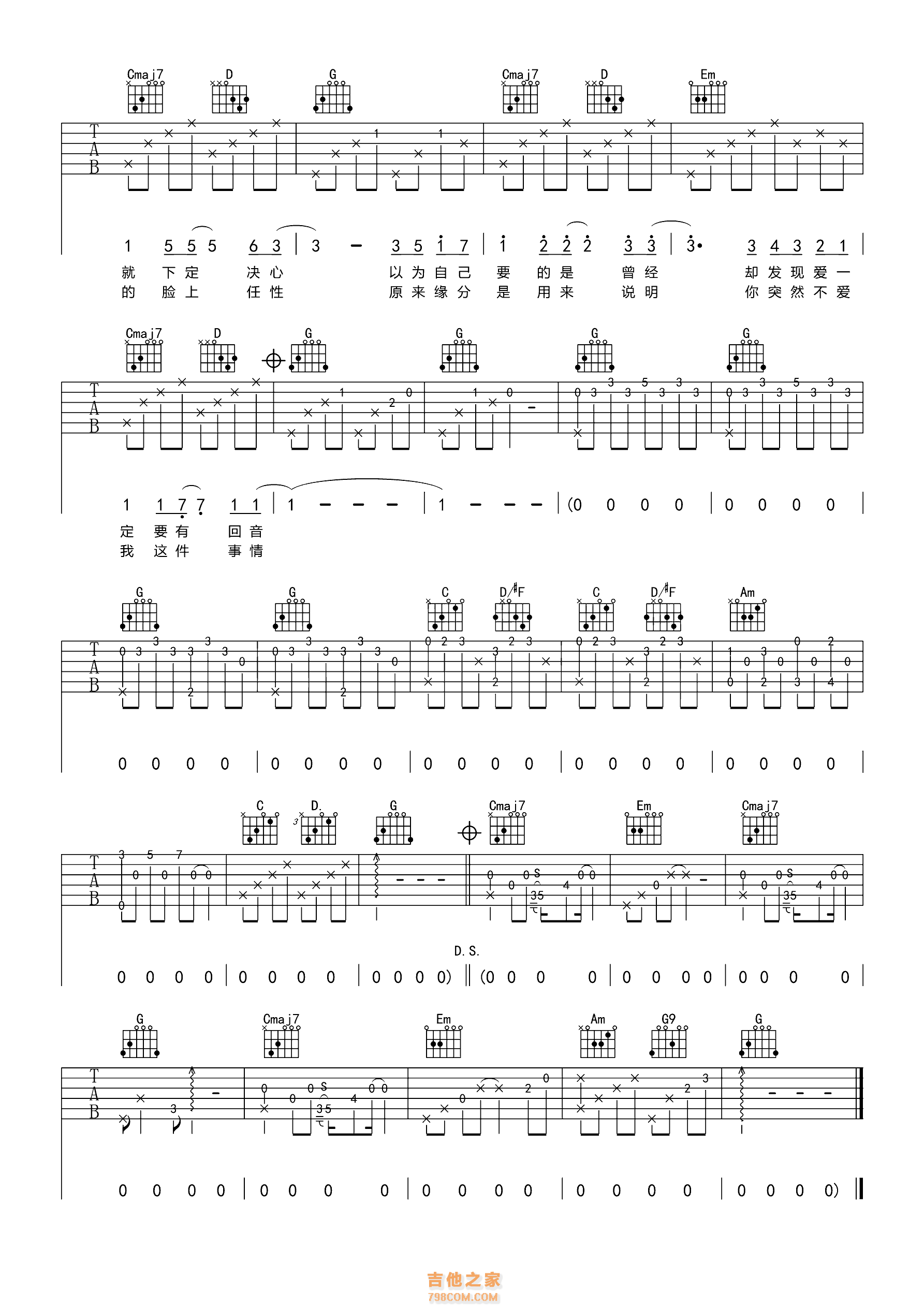 一直很安静吉他谱·阿桑《一直很安静》六线谱 选调:G 变调夹3品 《一直很安静》是中国台湾流行音乐女歌手阿桑演唱的一首歌曲,由方文山作词,蔡如岳作曲,是2005年播出的神话悲情剧《仙剑奇侠传》的插曲,同时收录在阿桑2005年2月25日发行的个人专辑《寂寞在唱歌》中。 《一直很安静》歌词: 空荡的街景 想找个人放感情 做这种决定 是寂寞与我为邻 我们的爱情 像你路过的风景 一直在进行 脚步却从来不会为我而停 给你的爱一直很安静 来交换你偶尔给的关心 明明是三个人的电影 我却始终不能有姓名 你说爱像云 要自在飘浮才美丽 我终于相信 分手的理由有时候很动听 给你的爱一直很安静 来交换你偶尔给的关心 明明是三个人的电影 我却始终不能有姓名 给你的爱一直很安静 我从一开始就下定决心 以为自己要的是曾经 却发现爱一定要有回应 给你的爱一直很安静 来交换你偶尔给的关心 明明是三个人的电影 我却始终不能有姓名 给你的爱一直很安静 除了泪在我的脸上任性 原来缘份是用来说明 你突然不爱我这件事情 |