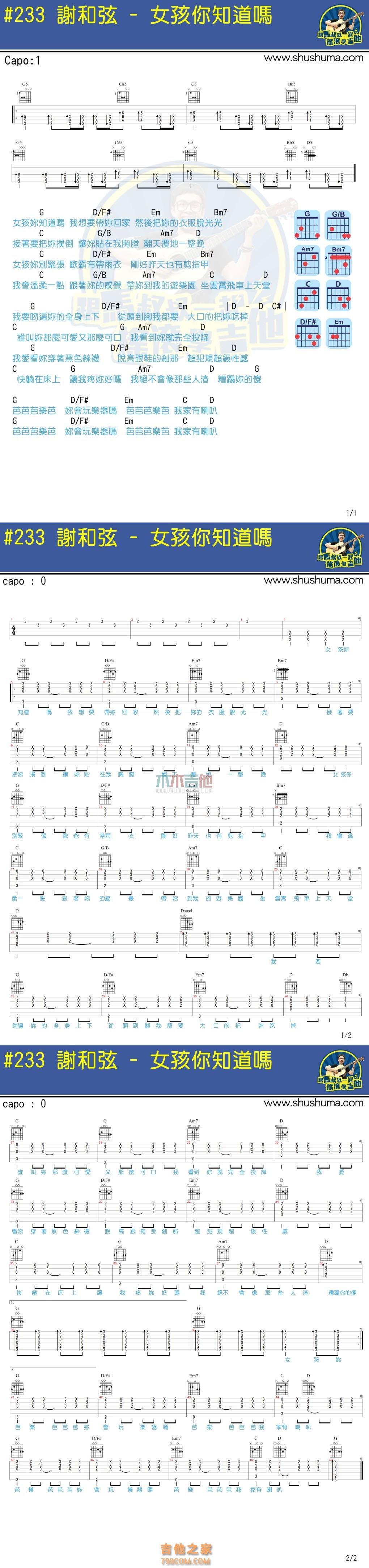 本章为“女孩你知道吗(马叔叔) ”信息,了解更多高清无码版本吉他谱、尤克里里、教学视频等信息,请关注吉他之家,我们会持续更新。