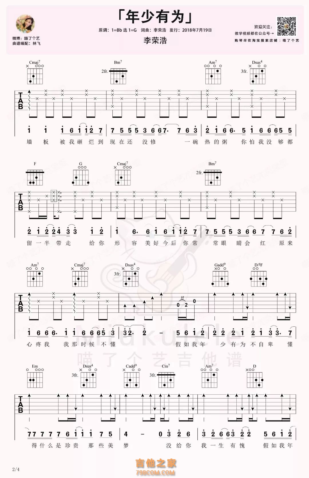 李荣浩《年少有为》吉他谱 李荣浩《年少有为》尤克里里谱 |