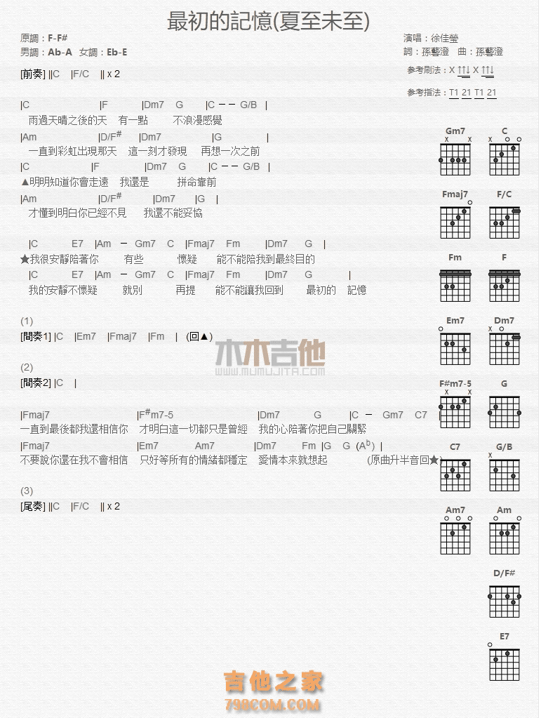 本章为“最初的记忆 ”信息,了解更多高清无码版本吉他谱、尤克里里、教学视频等信息,请关注吉他之家,我们会持续更新。