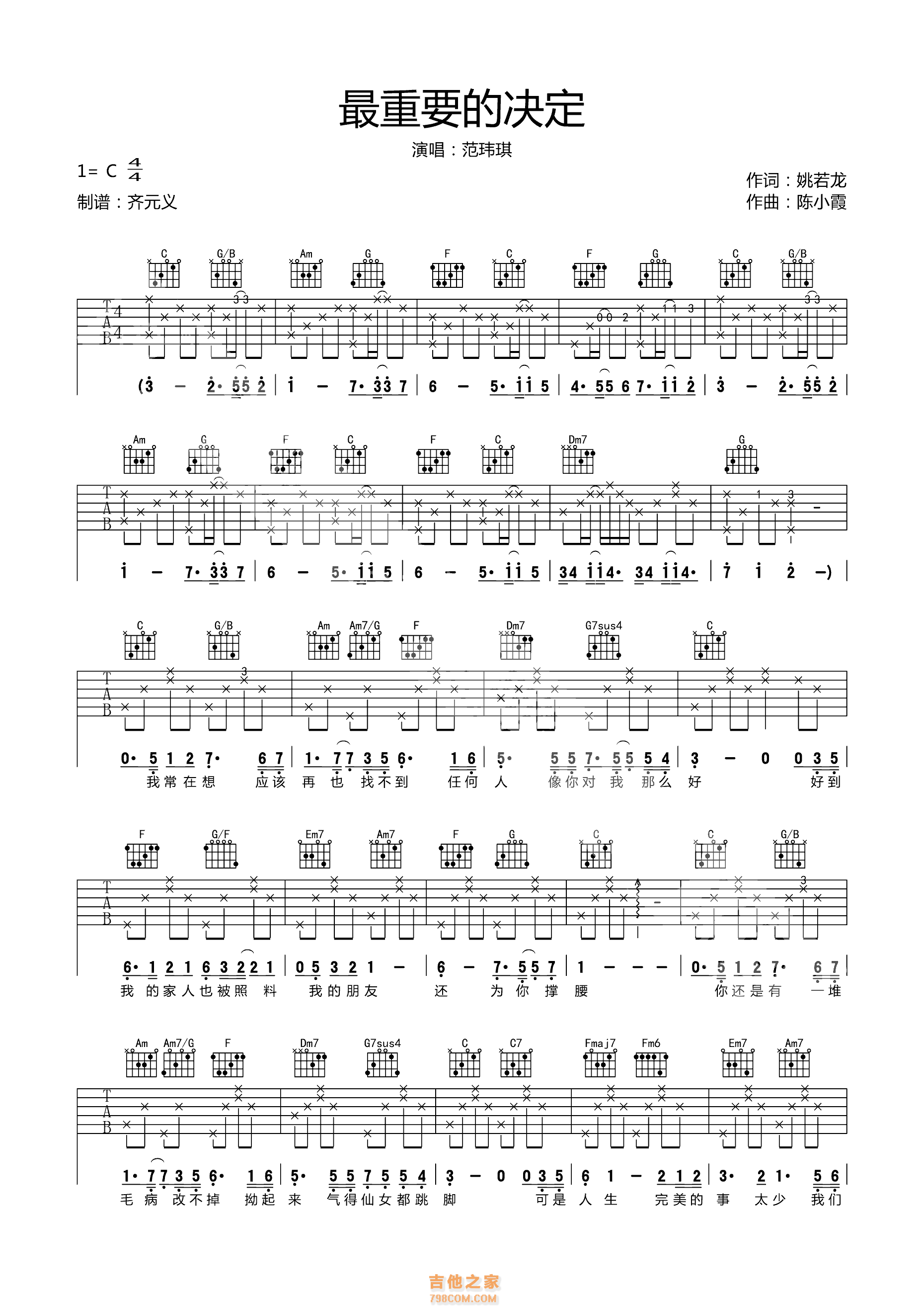 《最重要的决定》是中国台湾歌手范玮琪演唱的一首歌,收录在2011年3月18日发行的专辑《Love and Fanfan》之中,由陈小霞谱曲,姚若龙填词。2011年6月17日范玮琪发行的精选专辑《幸福情歌》中亦收录该歌。 2011年范玮琪和黑人陈建州的爱情持续了十年,终于步入了婚姻的殿堂。于是音乐人陈小霞、姚若龙联手送给范范的一份结婚礼物,创作了这首歌曲。范玮琪也以一首《最重要的决定》作为爱情宣言,于5月7日嫁给黑人,有情人终成眷属。 歌词是一大亮点,作词人姚若龙文字功夫依然很细腻很给力,再加上这首歌应时应景,作为准新娘范范的量身之作,“真爱没有输赢只有经营”这句金句最适合表达歌者对自己接下来人生的态度。 |