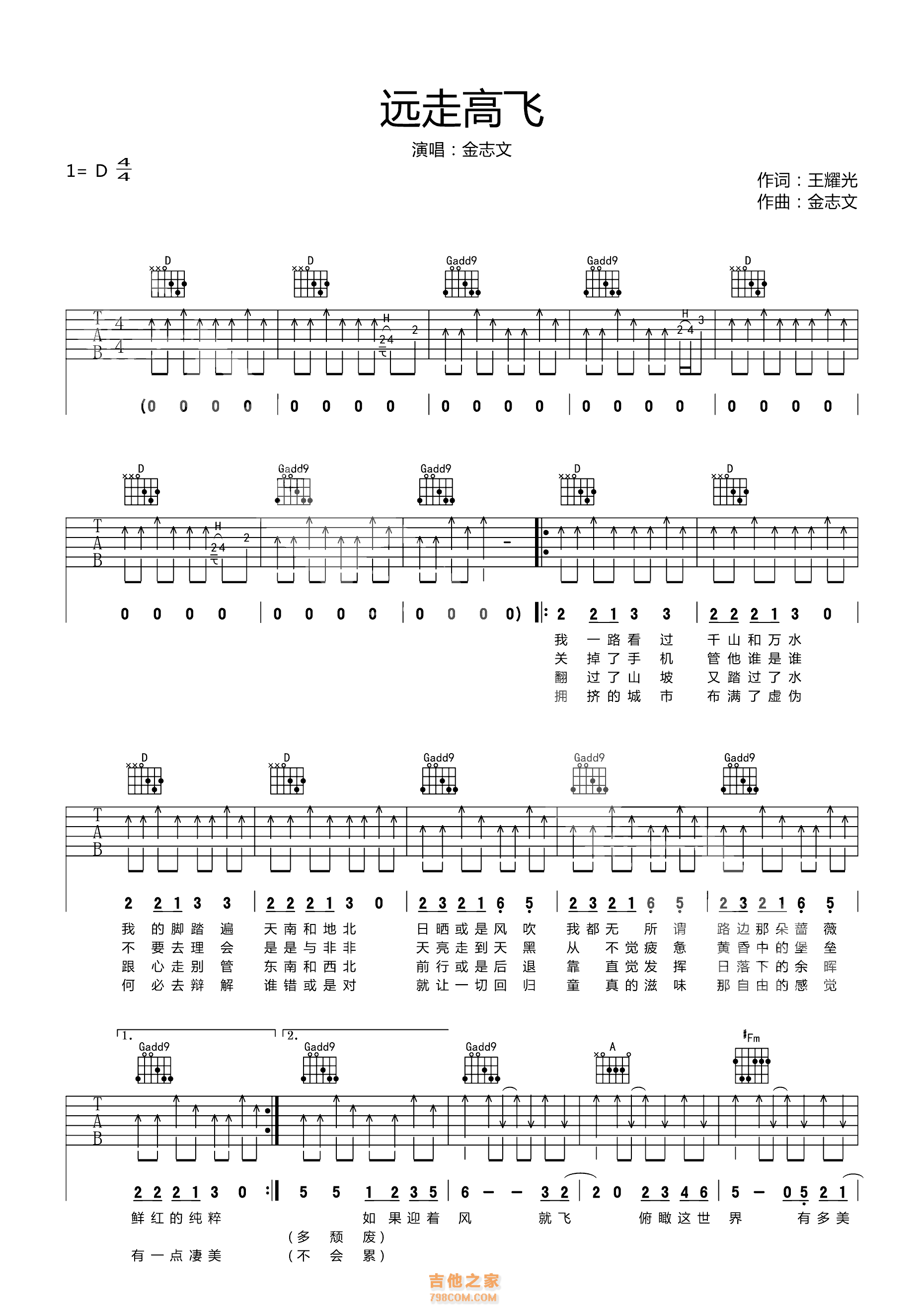 本章为“金志文 远走高飞吉他谱D调 ”信息,了解更多高清无码版本吉他谱、尤克里里、教学视频等信息,请关注吉他之家,我们会持续更新。
