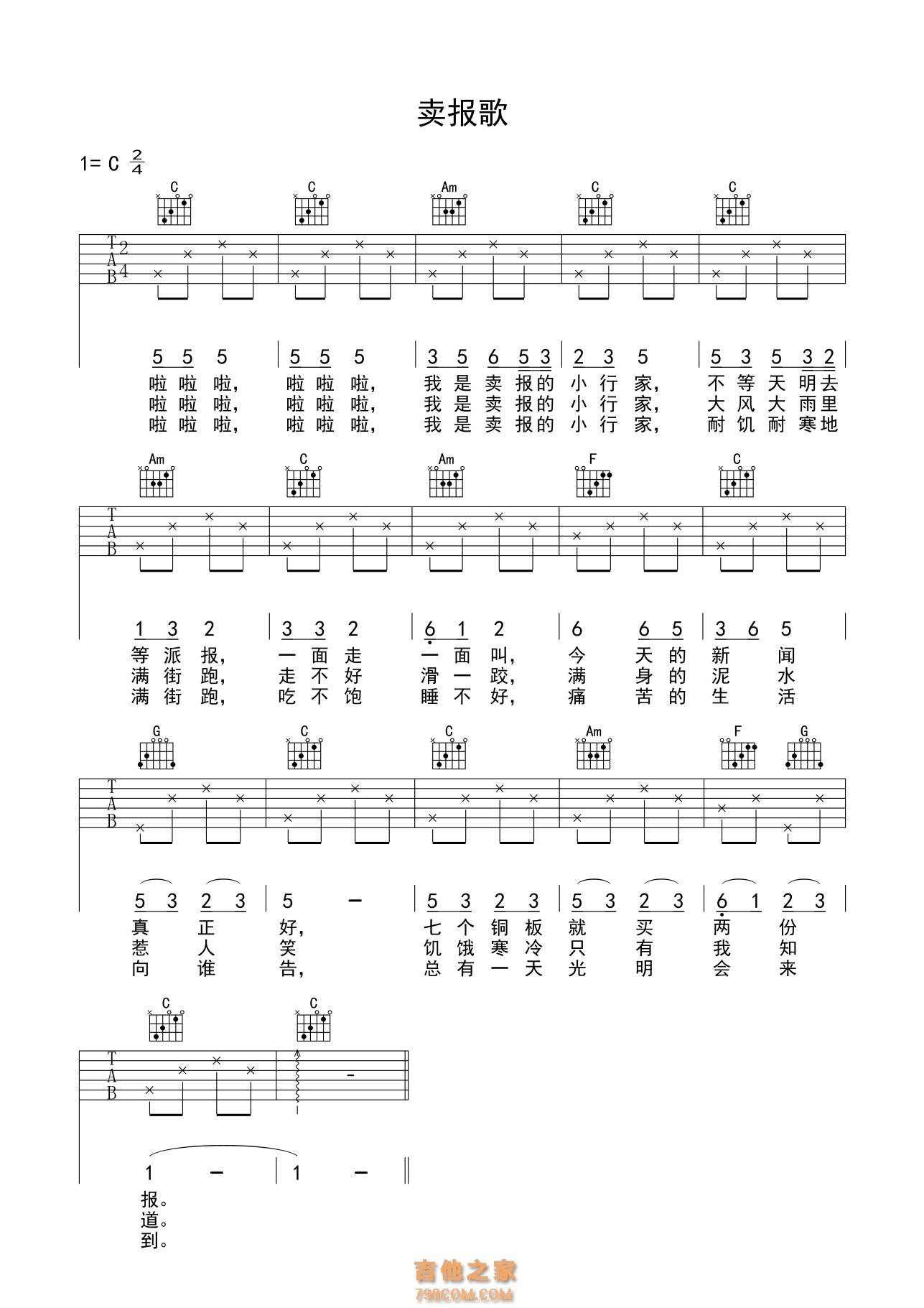 本章为“卖报歌吉他谱 入门版 ”信息,了解更多高清无码版本吉他谱、尤克里里、教学视频等信息,请关注吉他之家,我们会持续更新。