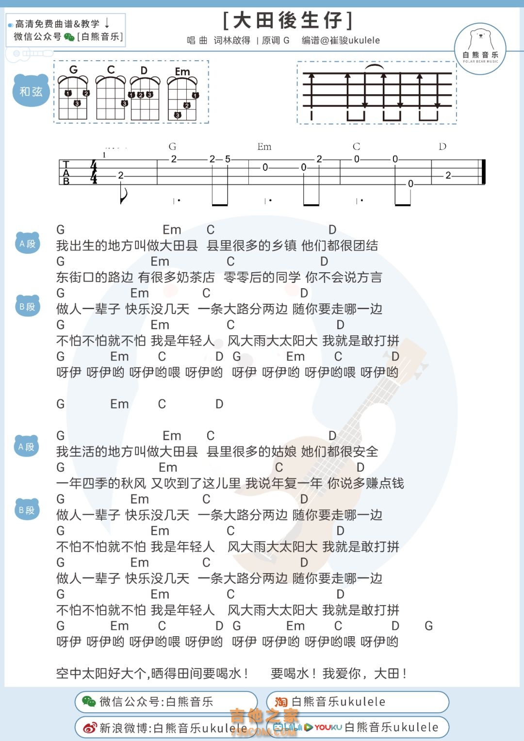 (普通话)我出生的地方叫做大田县 林啟得《大田後生仔》尤克里里弹唱谱 林啟得《大田後生仔》吉他弹唱谱 |