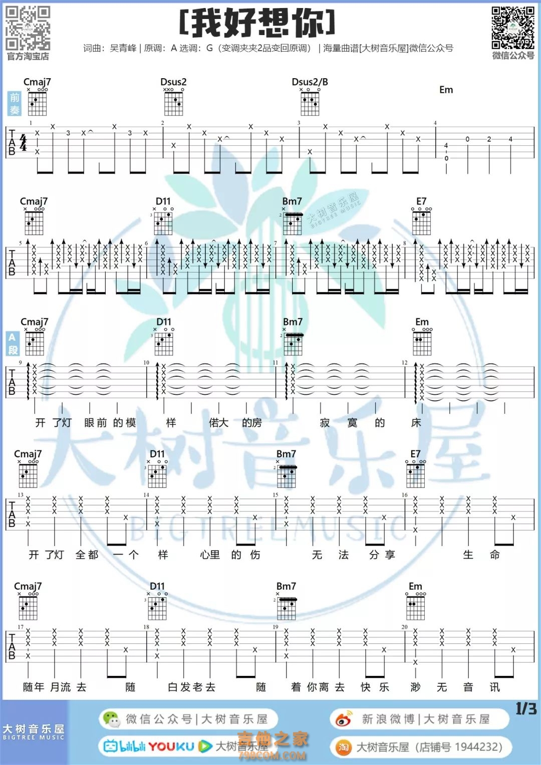 吉他之家为您提供:苏打绿《我好想你》吉他弹唱谱[大树音乐屋] ,查看更多苏打绿《我好想你》吉他弹唱谱[大树音乐屋] 图片谱、C调吉他谱、D调吉他谱、E调吉他谱、F调吉他谱、G调吉他谱、A调吉他谱、B调吉他谱、TXT吉他谱版、GTP吉他谱版、苏打绿《我好想你》吉他弹唱谱[大树音乐屋] 简谱、苏打绿《我好想你》吉他弹唱谱[大树音乐屋] 尤克里里谱、六线谱、五线谱、吉他和弦谱及苏打绿《我好想你》吉他弹唱谱[大树音乐屋] 吉他教学视频,请查看下方"相关阅读"。