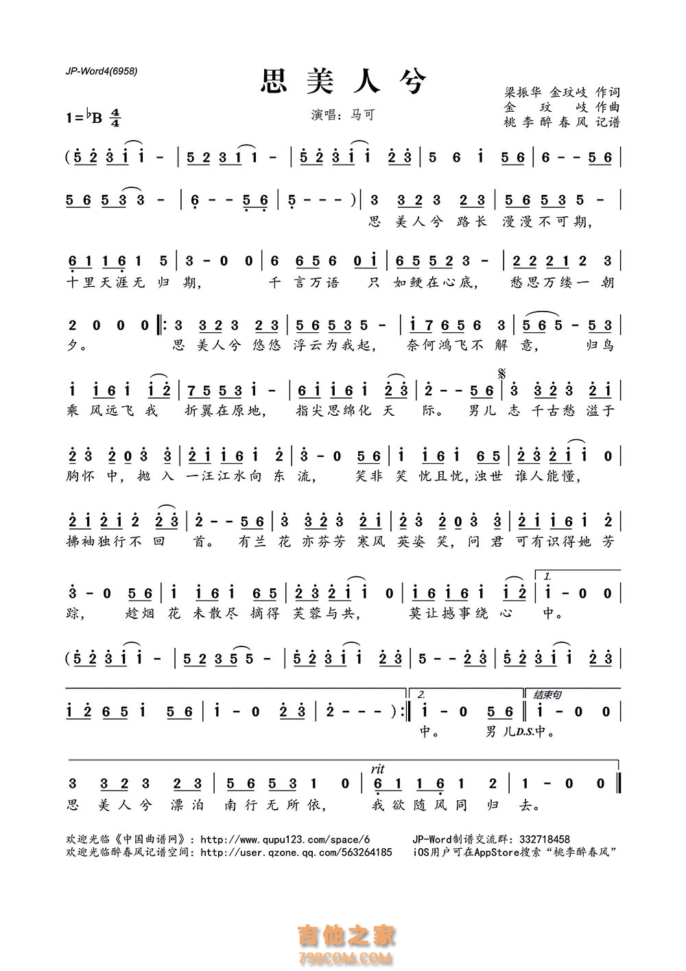 本章为“思美人兮简谱 ”信息,了解更多高清无码版本吉他谱、尤克里里、教学视频等信息,请关注吉他之家,我们会持续更新。