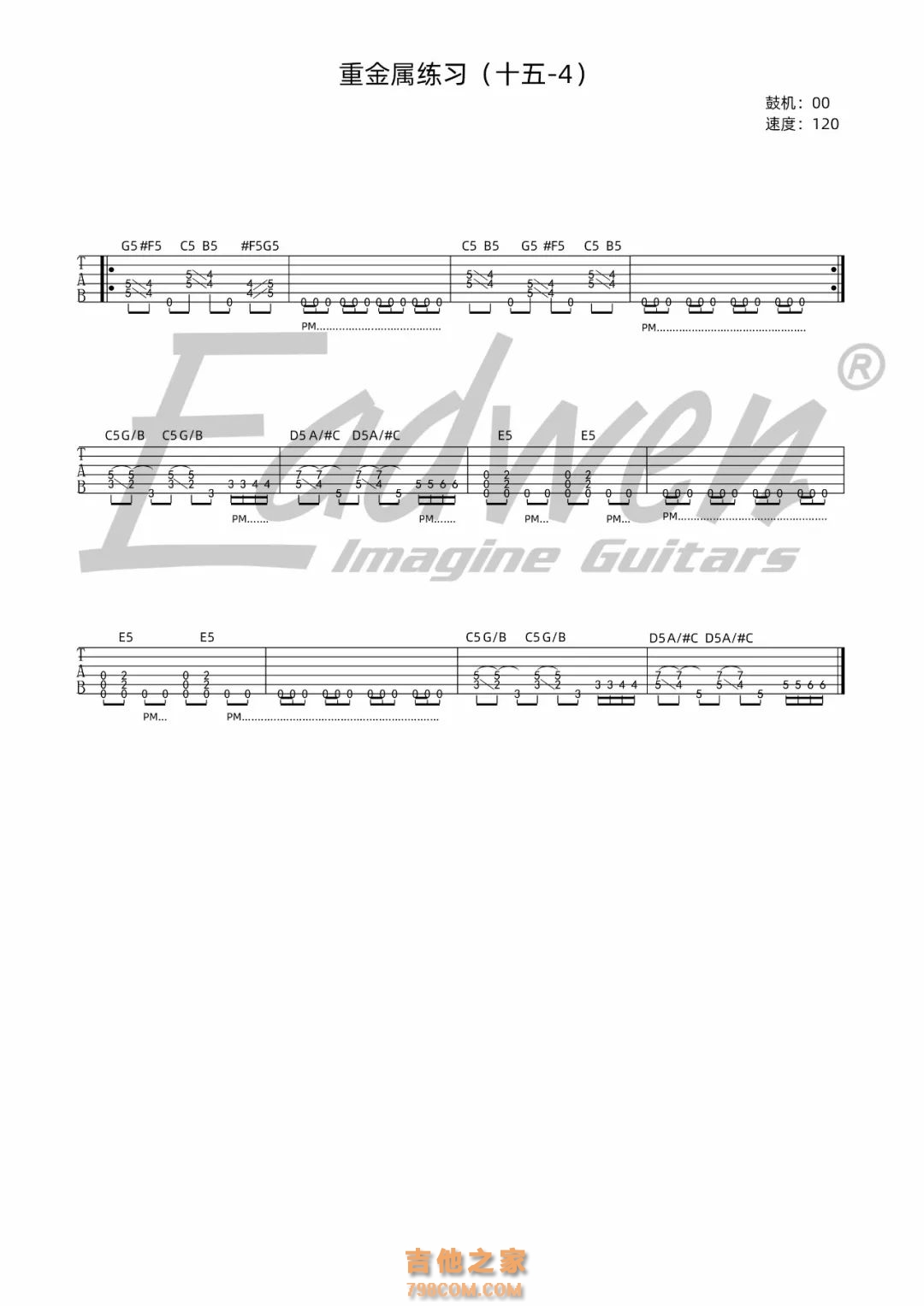 爱德文零基础系统教学—《电吉他系统教程》第五十七课、 重金属节奏(十五)第四部分 第五十七课 音频 鼓机00 速度 120