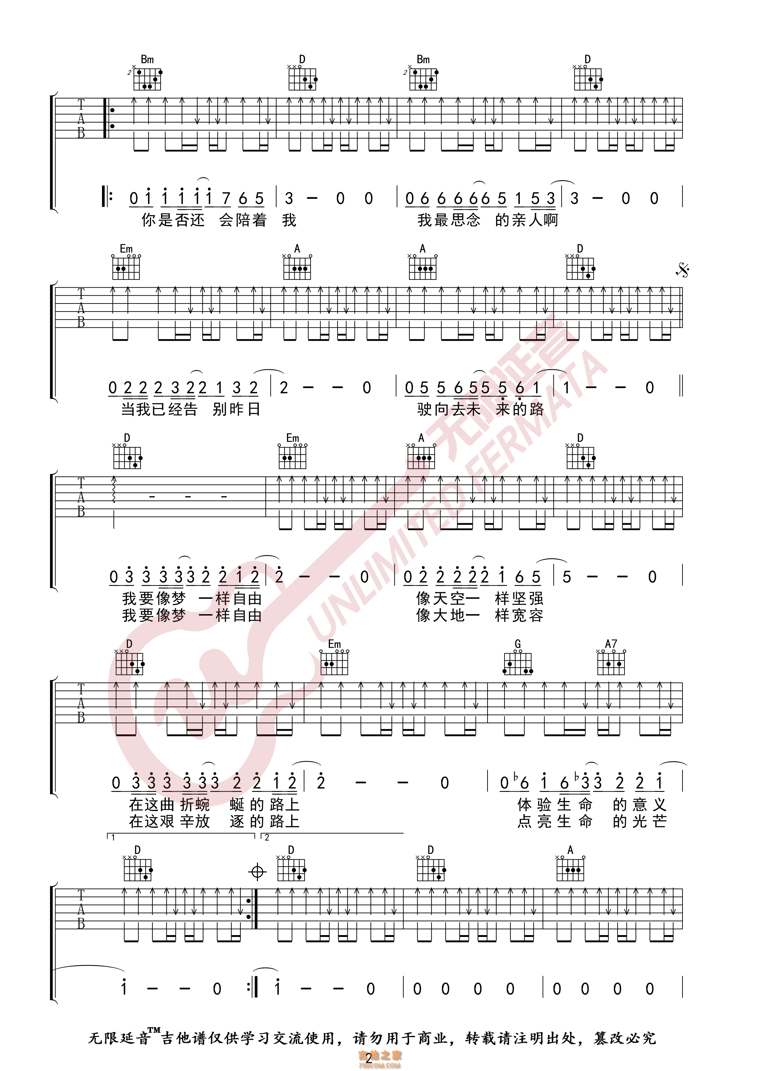 本章为“汪峰 像梦一样自由 吉他谱 无限延音编配 ”信息,了解更多高清无码版本吉他谱、尤克里里、教学视频等信息,请关注吉他之家,我们会持续更新。