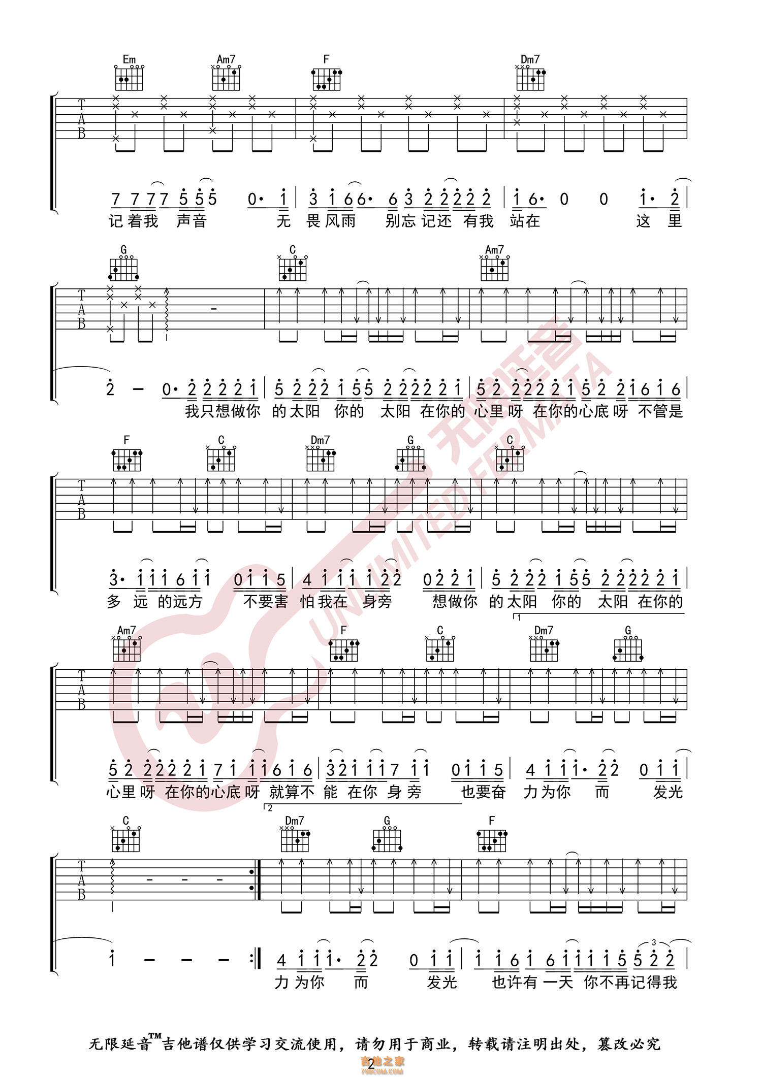 本章为“邱振哲 太阳 吉他谱 无限延音编配 ”信息,了解更多高清无码版本吉他谱、尤克里里、教学视频等信息,请关注吉他之家,我们会持续更新。