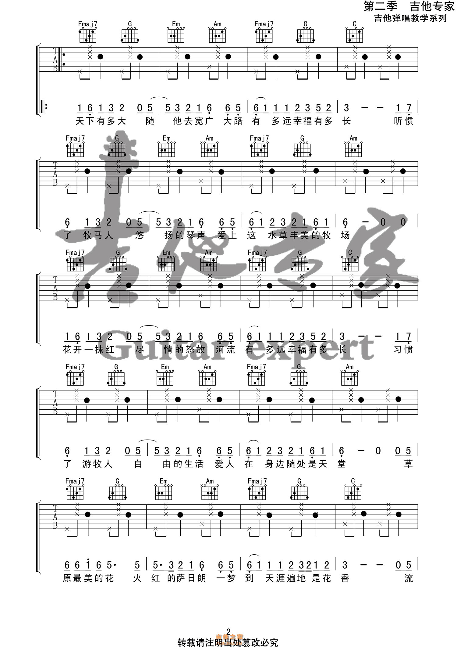 本章为“火红的萨日朗 原版吉他谱 ”信息,了解更多高清无码版本吉他谱、尤克里里、教学视频等信息,请关注吉他之家,我们会持续更新。
