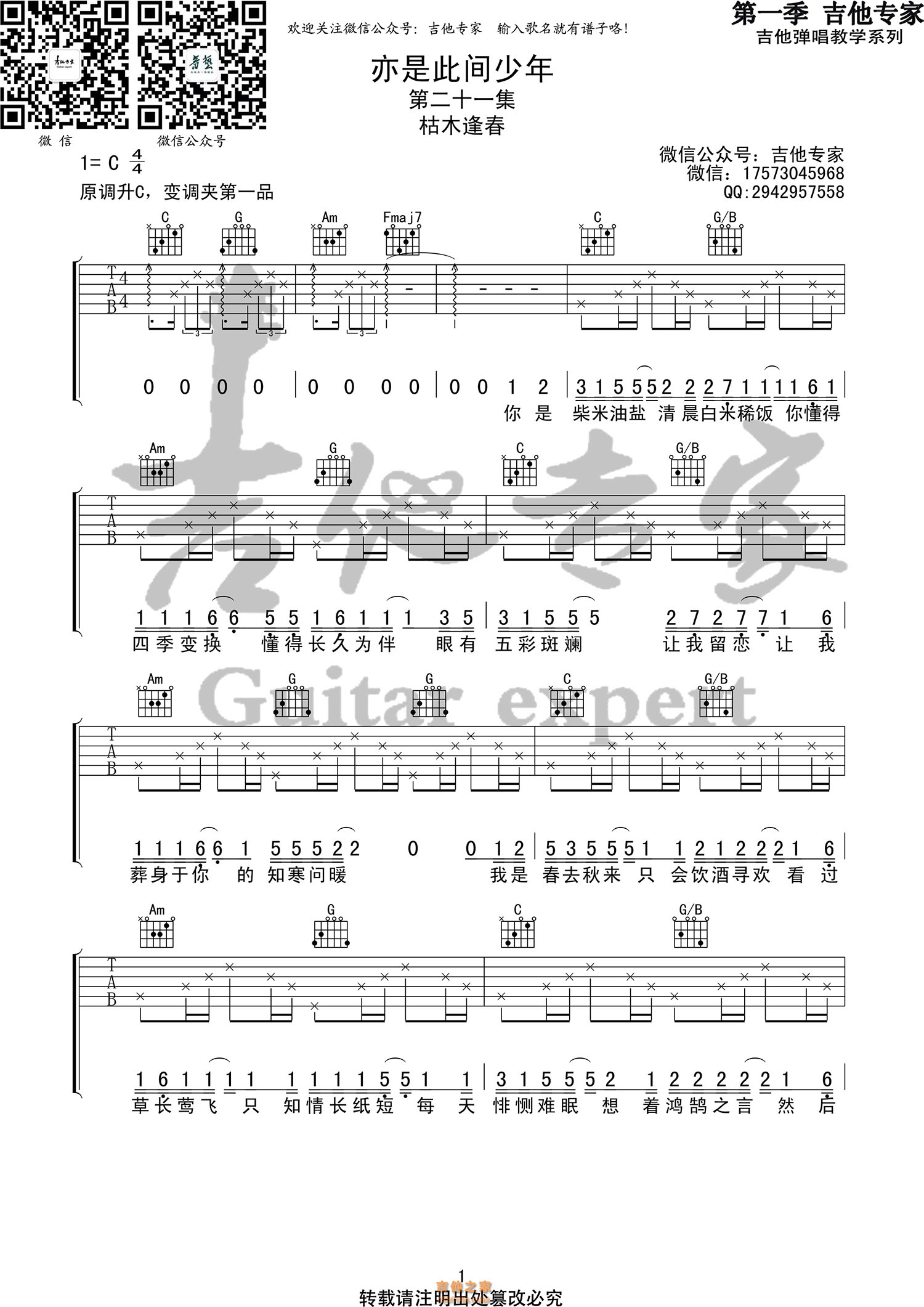 本章为“亦是此间少年 原版吉他谱 ”信息,了解更多高清无码版本吉他谱、尤克里里、教学视频等信息,请关注吉他之家,我们会持续更新。