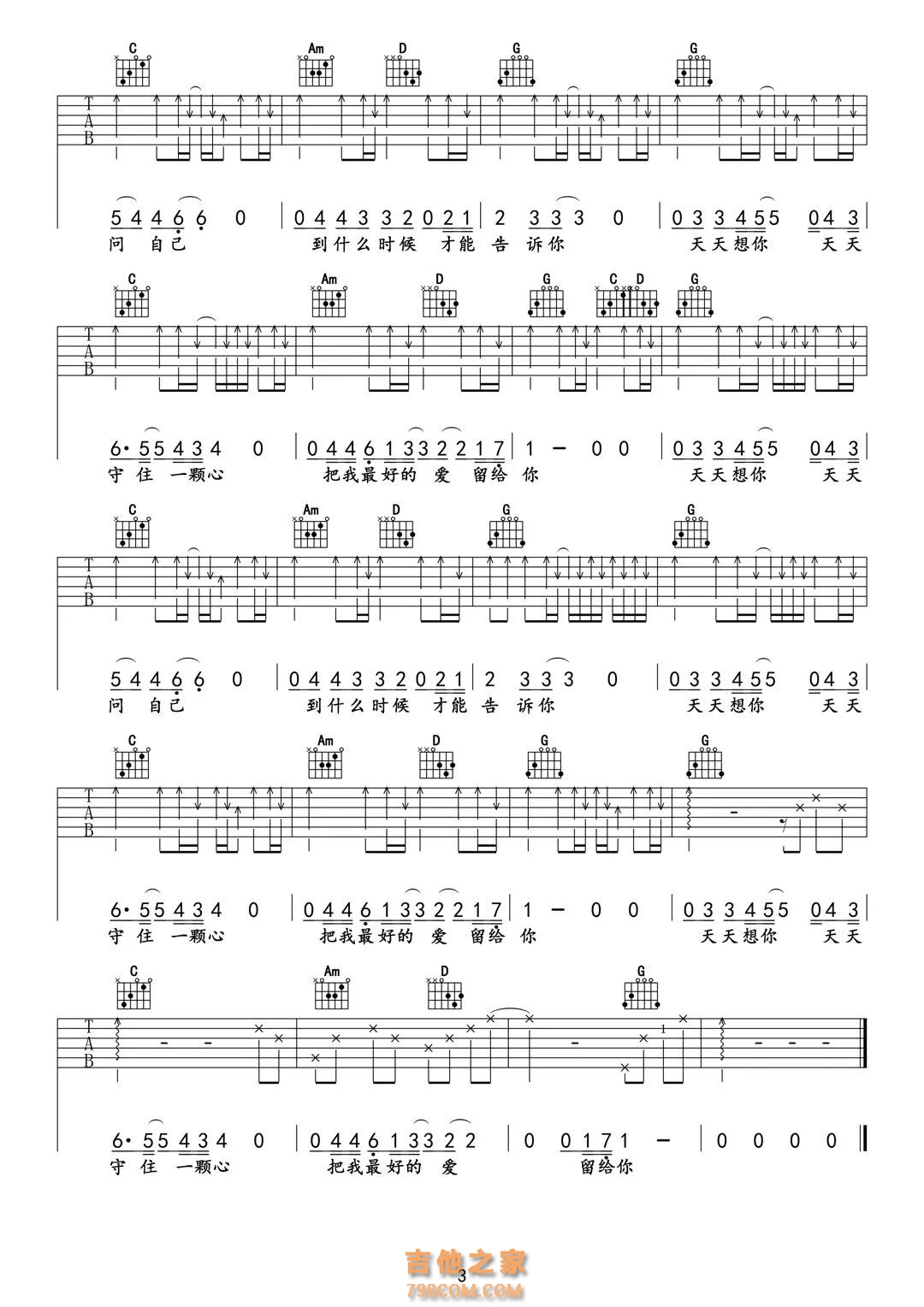 最易弹唱之流行经典 简易编配 简单却不乏味,适合女生和唱不了高音的男生,全网唯一C调谱~。 吉他之家为您提供:[经典老歌]张雨生《天天想你》吉他谱C调简易版 小宁吉他 ,查看更多[经典老歌]张雨生《天天想你》吉他谱C调简易版 小宁吉他 图片谱、C调吉他谱、D调吉他谱、E调吉他谱、F调吉他谱、G调吉他谱、A调吉他谱、B调吉他谱、TXT吉他谱版、GTP吉他谱版、[经典老歌]张雨生《天天想你》吉他谱C调简易版 小宁吉他 简谱、[经典老歌]张雨生《天天想你》吉他谱C调简易版 小宁吉他 尤克里里谱、六线谱、五线谱、吉他和弦谱及[经典老歌]张雨生《天天想你》吉他谱C调简易版 小宁吉他 吉他教学视频,请查看下方"相关阅读"。
