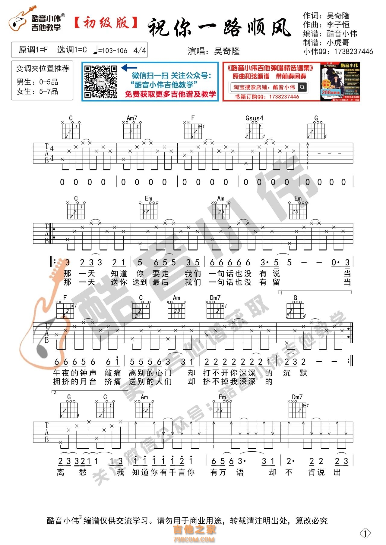 吉他之家为您提供:祝你一路顺风吉他谱 吴奇隆 初级版 酷音小伟吉 ,查看更多祝你一路顺风吉他谱 吴奇隆 初级版 酷音小伟吉 图片谱、C调吉他谱、D调吉他谱、E调吉他谱、F调吉他谱、G调吉他谱、A调吉他谱、B调吉他谱、TXT吉他谱版、GTP吉他谱版、祝你一路顺风吉他谱 吴奇隆 初级版 酷音小伟吉 简谱、祝你一路顺风吉他谱 吴奇隆 初级版 酷音小伟吉 尤克里里谱、六线谱、五线谱、吉他和弦谱及祝你一路顺风吉他谱 吴奇隆 初级版 酷音小伟吉 吉他教学视频,请查看下方"相关阅读"。