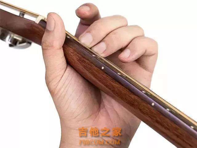 有两种按法: a) 食指放在5弦的第二品上,中指放在6弦的第三品上,无名指放在1弦的第三品上: