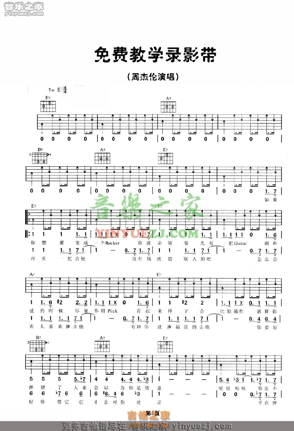 本章为“周杰伦《免费教学录影带》吉他谱 ”信息,了解更多高清无码版本吉他谱、尤克里里、教学视频等信息,请关注吉他之家,我们会持续更新。