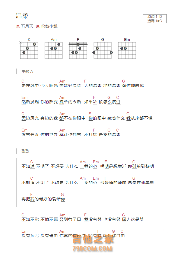 本章为“温柔吉他谱和弦版 五月天 ”信息,了解更多高清无码版本吉他谱、尤克里里、教学视频等信息,请关注吉他之家,我们会持续更新。