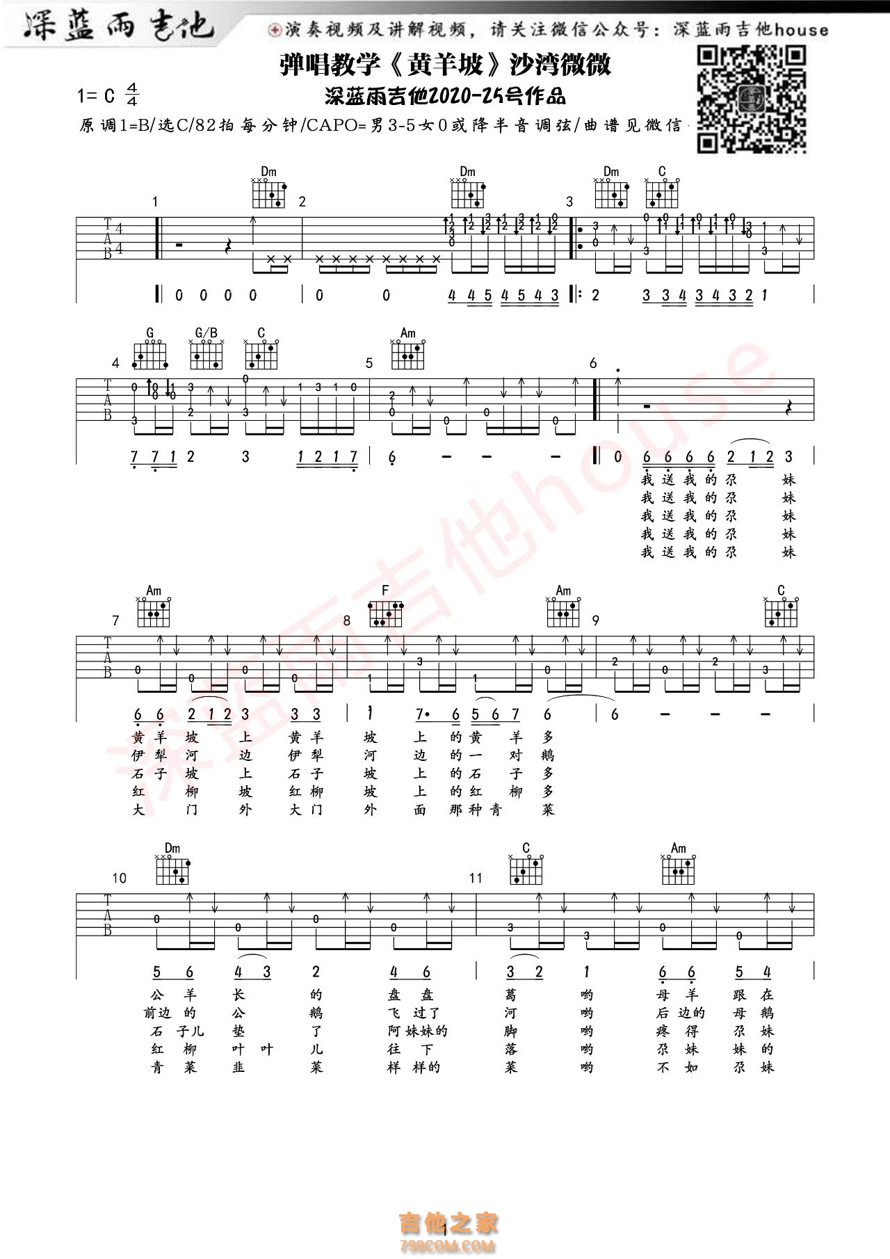 沙湾微微《黄羊坡》吉他谱 这是一首相对比较冷门的歌曲,一般情况我会考虑传唱度和流传度比较广的歌曲,这次是重庆酉阳县一个网友点配的歌曲,我比较喜欢民族化一点的东西,尤其这种舞曲风格的,觉得很有意思,同样是描述爱情,但这种描述很淳朴很纯真。