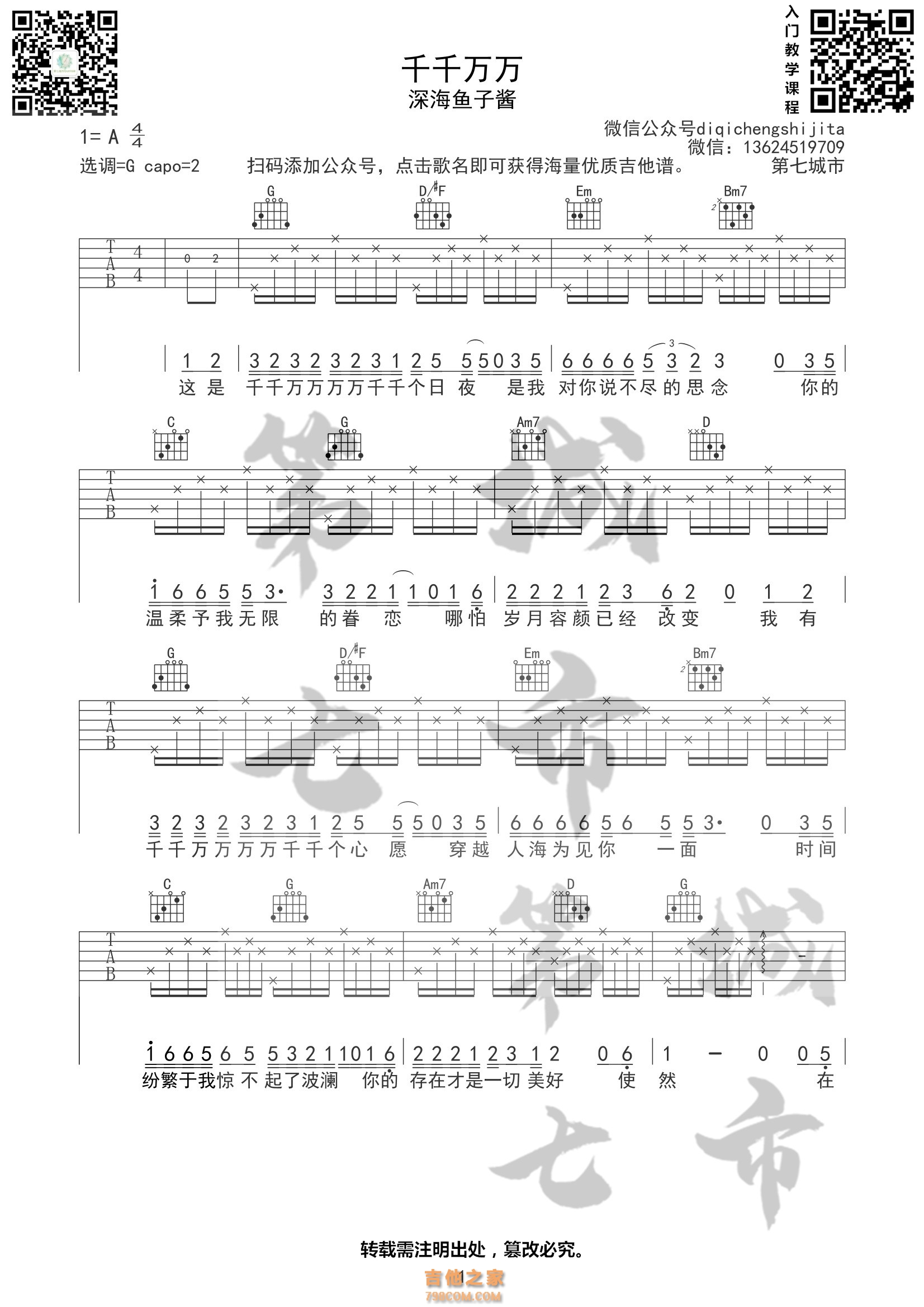 本章为“千千万万 吉他谱 深海鱼子酱 ”信息,了解更多高清无码版本吉他谱、尤克里里、教学视频等信息,请关注吉他之家,我们会持续更新。
