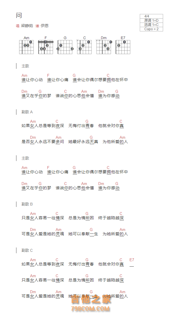 本章为“问吉他谱和弦版 梁静茹 ”信息,了解更多高清无码版本吉他谱、尤克里里、教学视频等信息,请关注吉他之家,我们会持续更新。