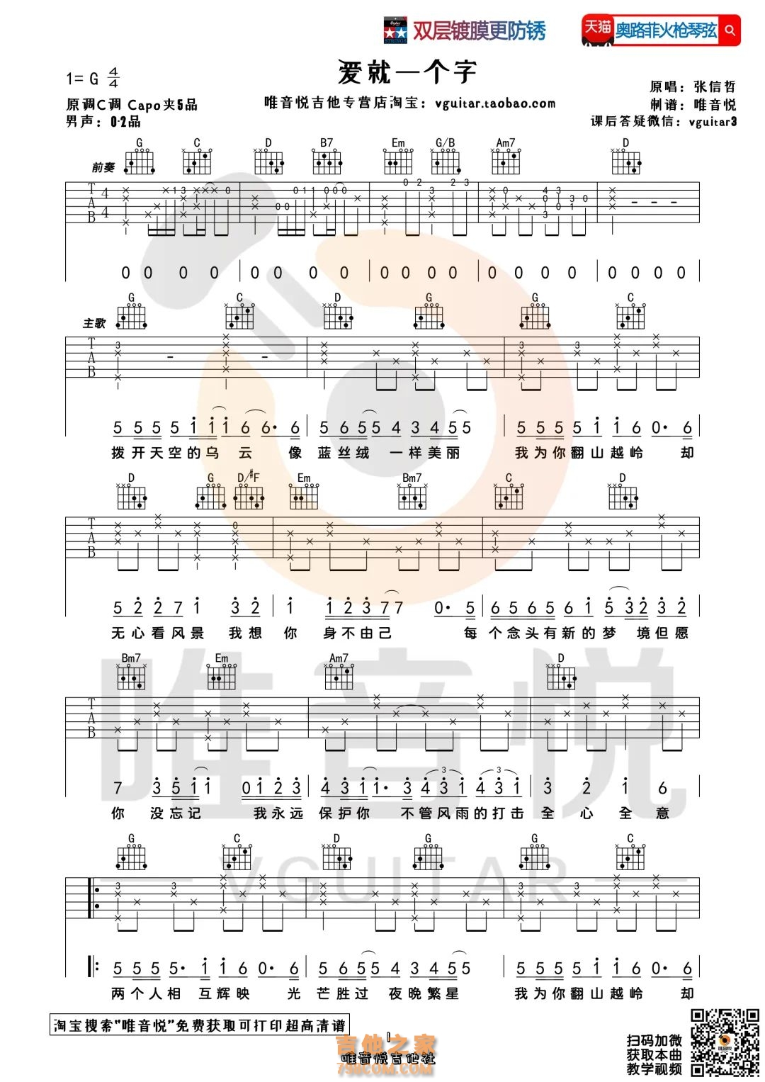 该首歌曲情绪饱满、诚挚动人,曾治愈过无数人的心。 吉他之家为您提供:张信哲《爱就一个字》吉他谱 唯音悦吉他社 ,查看更多张信哲《爱就一个字》吉他谱 唯音悦吉他社 图片谱、C调吉他谱、D调吉他谱、E调吉他谱、F调吉他谱、G调吉他谱、A调吉他谱、B调吉他谱、TXT吉他谱版、GTP吉他谱版、张信哲《爱就一个字》吉他谱 唯音悦吉他社 简谱、张信哲《爱就一个字》吉他谱 唯音悦吉他社 尤克里里谱、六线谱、五线谱、吉他和弦谱及张信哲《爱就一个字》吉他谱 唯音悦吉他社 吉他教学视频,请查看下方"相关阅读"。