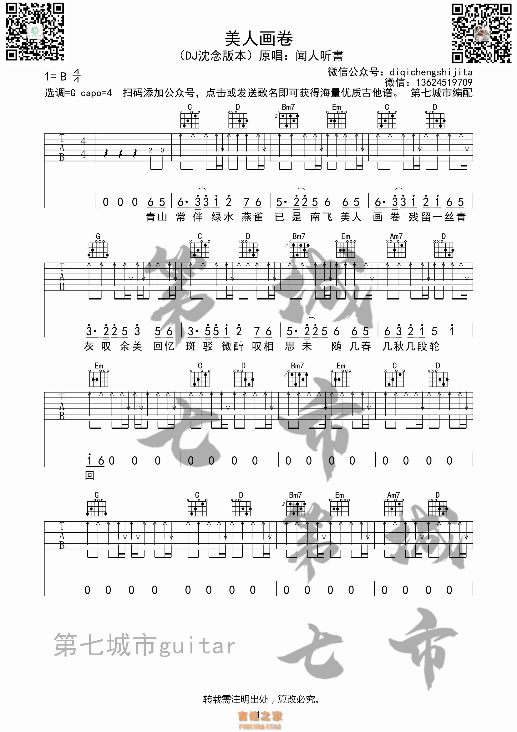 吉他之家为您提供:美人画卷 吉他谱 第七城市编配 ,查看更多美人画卷 吉他谱 第七城市编配 图片谱、C调吉他谱、D调吉他谱、E调吉他谱、F调吉他谱、G调吉他谱、A调吉他谱、B调吉他谱、TXT吉他谱版、GTP吉他谱版、美人画卷 吉他谱 第七城市编配 简谱、美人画卷 吉他谱 第七城市编配 尤克里里谱、六线谱、五线谱、吉他和弦谱及美人画卷 吉他谱 第七城市编配 吉他教学视频,请查看下方"相关阅读"。