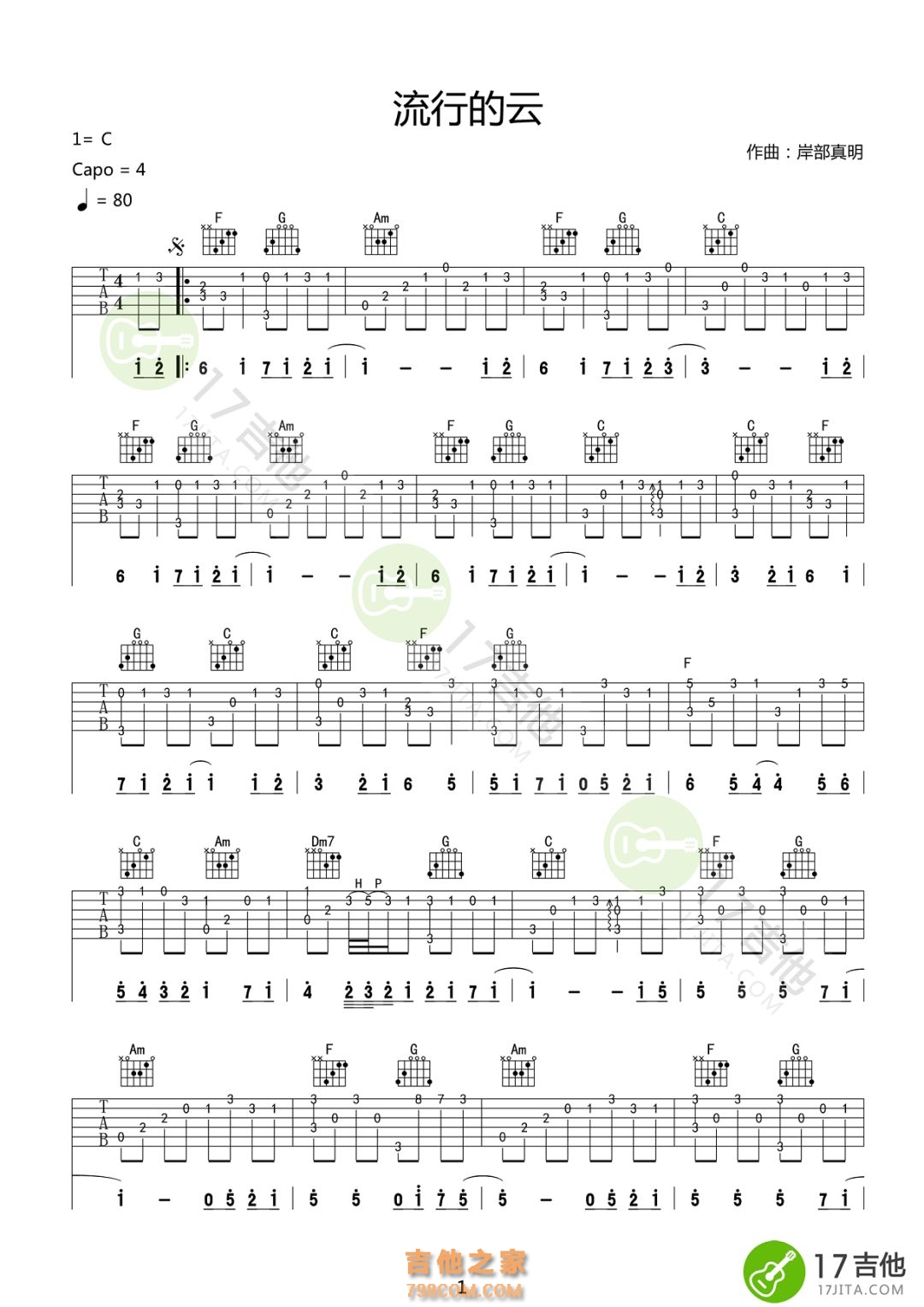 本章为“吉他谱|指弹《流行的云》 ”信息,了解更多高清无码版本吉他谱、尤克里里、教学视频等信息,请关注吉他之家,我们会持续更新。