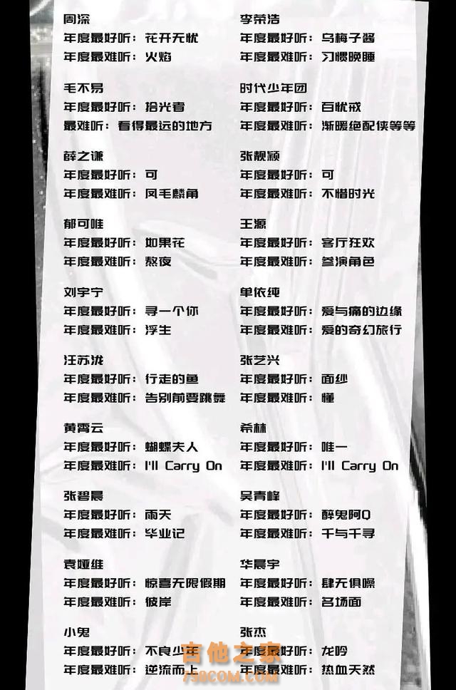 那么最难听的是哪一首呢?个人觉得,其实周深的嗓音基本能够让歌曲做到不难听,只是旋律优美与否罢了。 大家也可以说说自己的看法!其他的数据就不分析了,大家可以看这张图片!